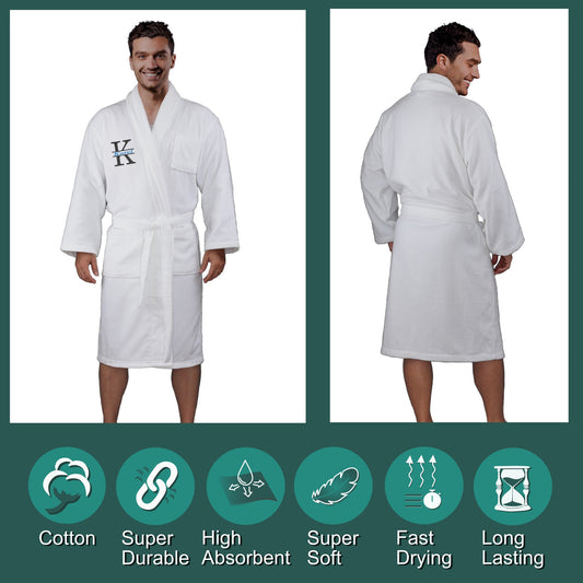 Personalized Unisex Terry Velvet Cotton Luxury Robe, Split Initial Monogram, Design 1